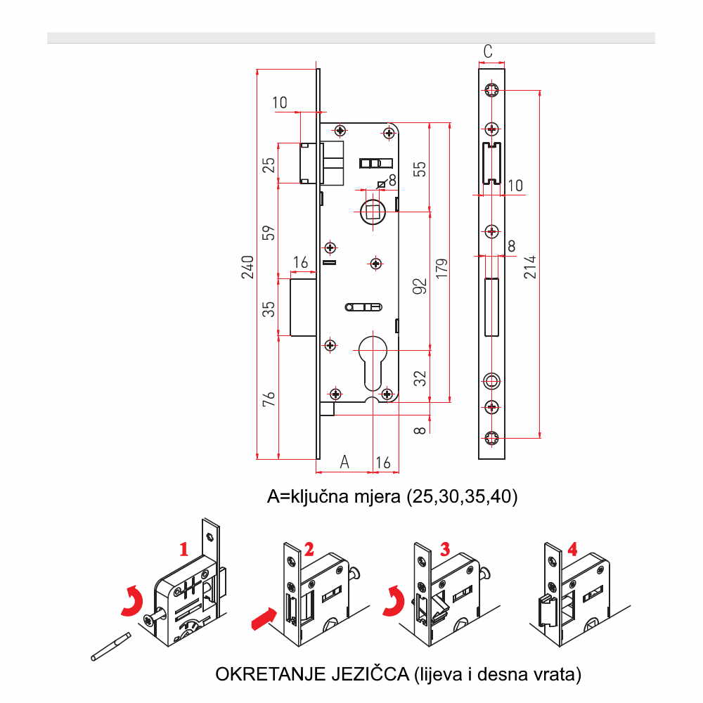 - Dostupne dubine (ključne mjere) 25mm-30mm-35mm-40mm