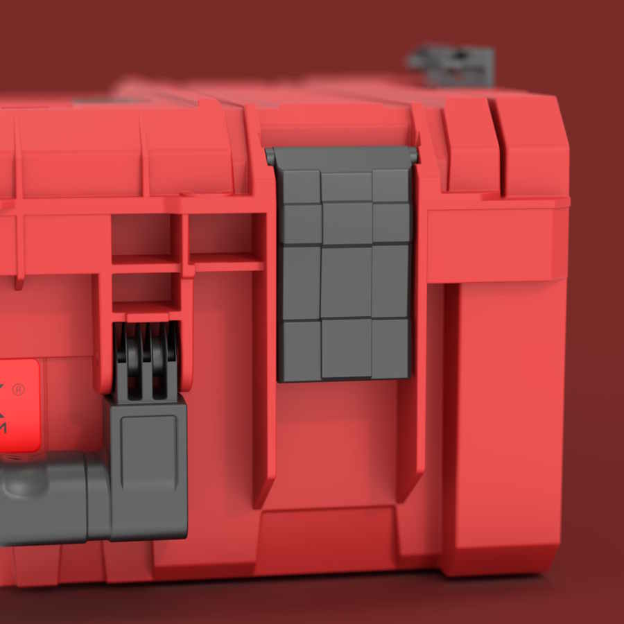 Kućište je izrađeno od Ultra HD plastike visoke otpornosti, testirano na udarce i ekstremne temperature, uključujući rad ispod 0 °C. Kutija standardno dolazi s prostranom ladicom koja omogućuje organizaciju manjih i većih alata, dok fleksibilna brtva u poklopcu štiti sadržaj od prašine i vode.