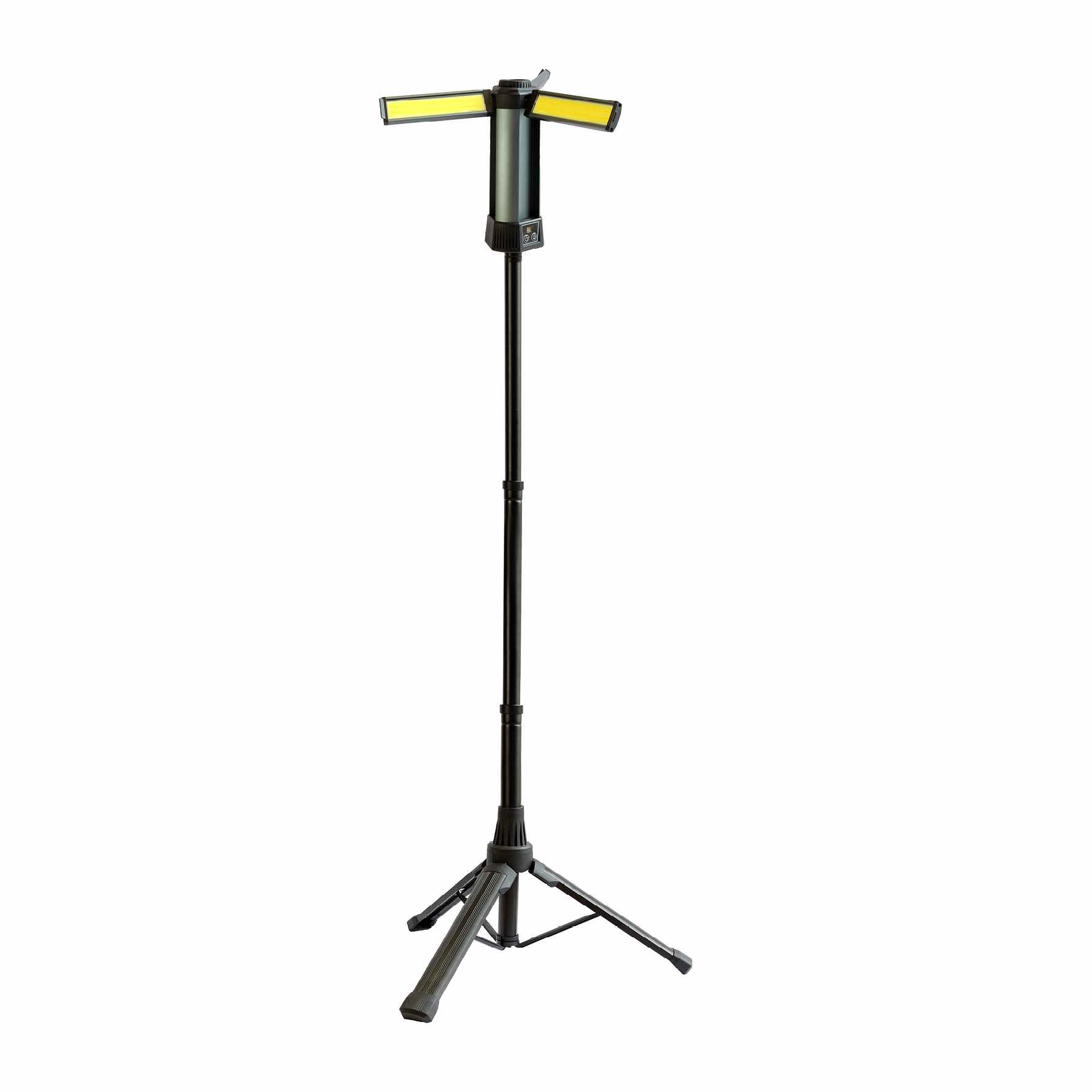 Teleskopski stalak omogućuje podizanje svjetiljke na veću visinu, što je iznimno praktično za građevinske radove, popravke vozila, rad u garaži, kampiranje ili bilo koji teren gdje je potrebna stabilna rasvjeta.