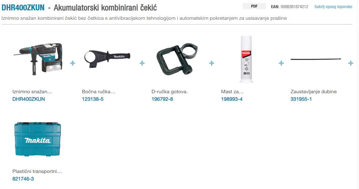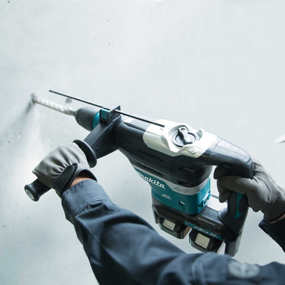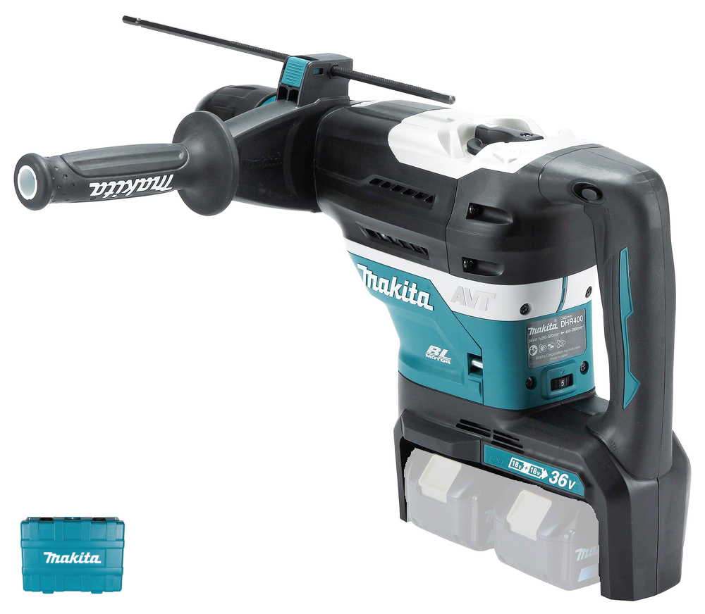 Aku štemerica Makita DHR400ZKU kombinira dvije 18 V LXT baterije kako bi isporučio ukupno 36 V snage, omogućujući maksimalnu udarnu energiju od 8,0 J. Pogodan je za bušenje i klesanje betona, cigle i kamena, s prihvatom SDS-MAX koji osigurava jednostavnu izmjenu svrdla i dlijeta.