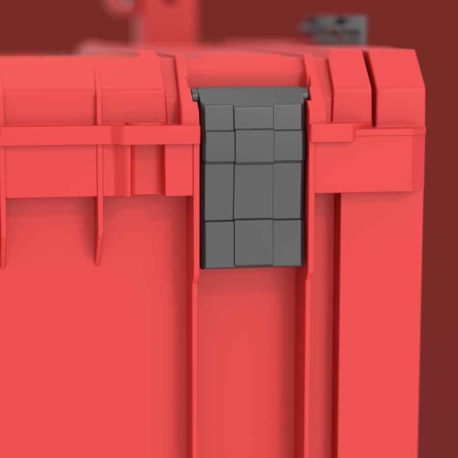 Poklopac dolazi s fleksibilnom brtvom koja pruža zaštitu klase IP54 – otpornost na prašinu, kišu i vlagu, što osigurava sigurnu pohranu alata u svim uvjetima. Bočne spojnice i kopče izrađene su od čvrstog poliamida, što dodatno povećava trajnost i pouzdanost u profesionalnoj upotrebi.