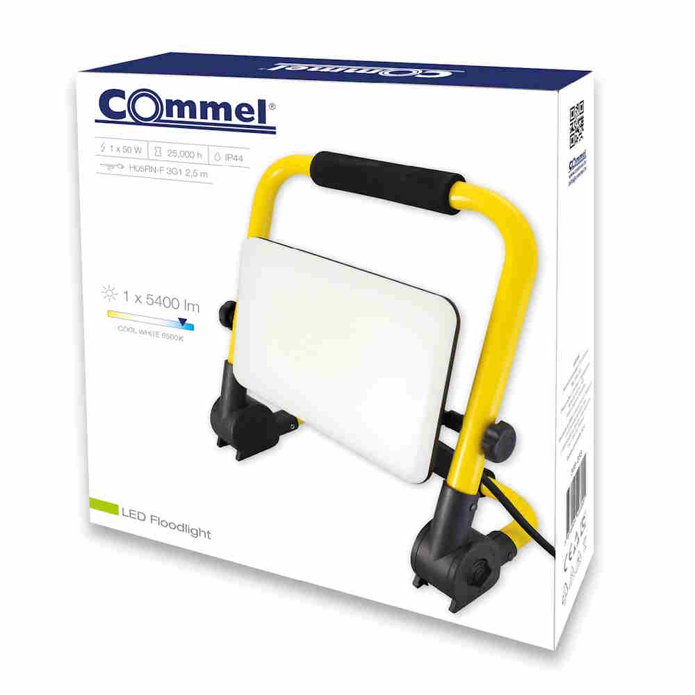 LED radni reflektor na stalku Commel pouzdano je rješenje za osvjetljavanje radnih površina u svim uvjetima, bilo da se radi o gradilištima, uređenju interijera, servisu vozila, snimanju video materijala ili kućnim DIY projektima. Zahvaljujući snažnom LED izvoru svjetla s temperaturom od 6500 K, pruža jasno i prirodno bijelo svjetlo koje olakšava precizan rad. Dostupan je u dvije izvedbe – 30 W (3200 lm) i 50 W (5400 lm) – što ga čini odličnim izborom za sve razine osvjetljenja, od manjih do većih radnih prostora. Reflektor ima sklopivi metalni stalak koji omogućuje jednostavan transport i brzo postavljanje na svaku ravnu površinu. Kabel duljine 2,5 m daje dodatnu fleksibilnost pri pozicioniranju uređaja. Kućište je zaštićeno IP44 standardom, što ga čini otpornim na prskanje vode i prašinu, idealno za korištenje na otvorenom i u zahtjevnim radnim uvjetima. LED tehnologija osigurava dug vijek trajanja, nisku potrošnju energije i stabilnu svjetlosnu jakost bez zagrijavanja. Zahvaljujući laganoj i prijenosnoj konstrukciji, zauzima minimalno mjesta kada je sklopljen, što ga čini savršenim za mobilne majstore, profesionalce i hobiste. Koristi se kao radni reflektor, građevinski reflektor, LED lampa za radionice, rasvjeta za snimanje, rasvjeta za garaže i javne događaje.