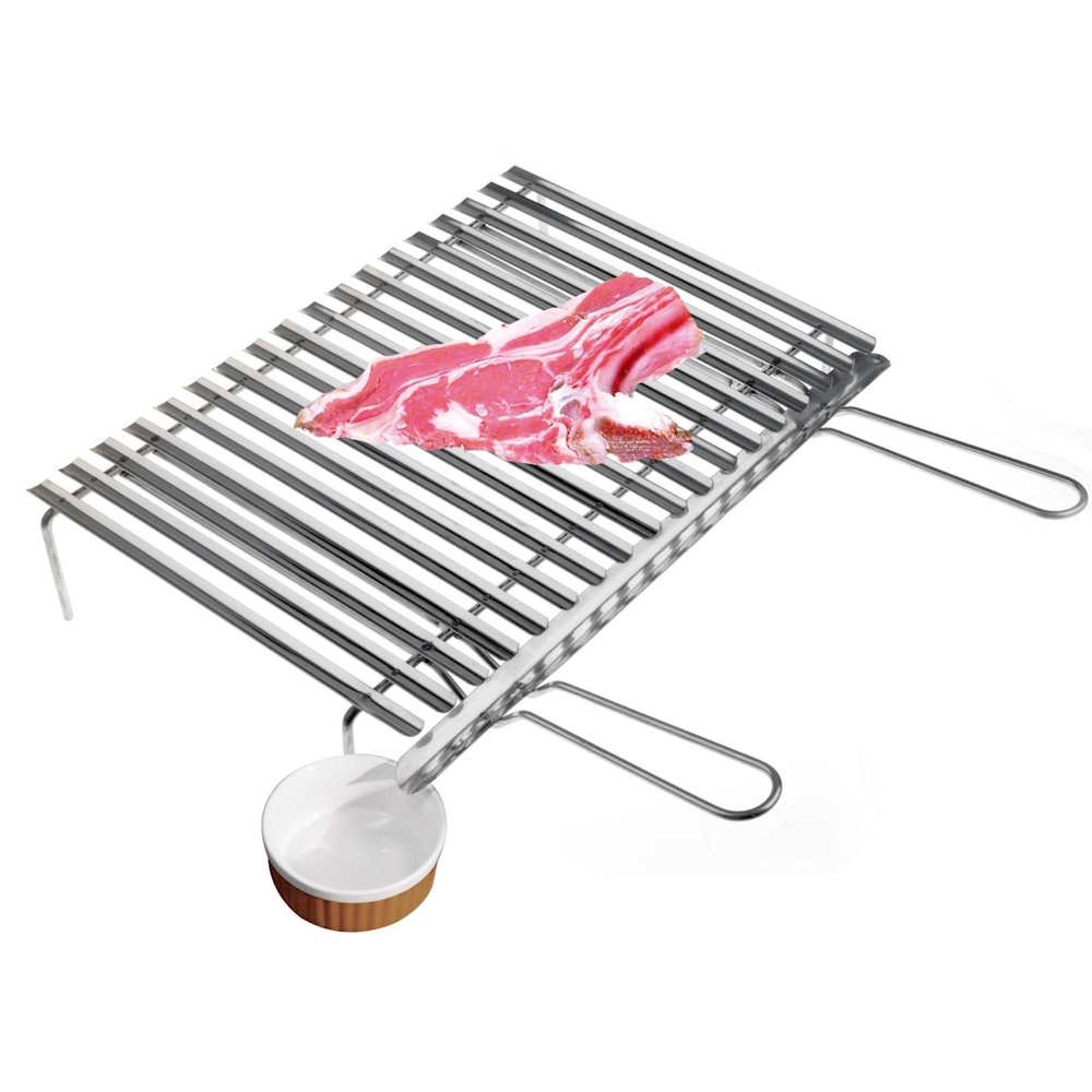 Rešetka za roštilj Art 705 dimenzija 50x35x10 cm izrađena je od visokokvalitetnog inoxa (nehrđajućeg čelika) koji osigurava dug vijek trajanja i jednostavno održavanje. Posebno oblikovani žljebovi omogućuju da se masnoća tijekom pečenja prirodno odvodi, čime se sprječava kapanje po žaru i stvaranje dima. Na taj način pečenje postaje zdravije, ukusnije i sigurnije, a roštilj ostaje čišći.