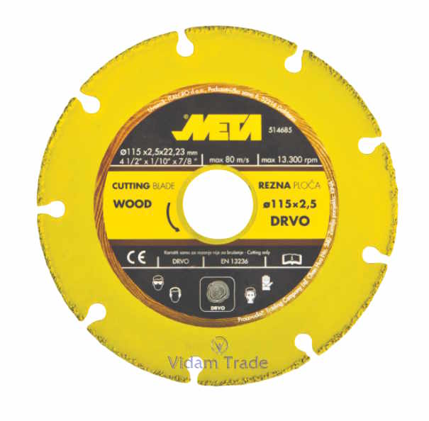 META rezna ploča Ø115 x 2,5 mm namijenjena je za učinkovito rezanje različitih materijala, uključujući drvo, ivericu, šperploču i plastiku. Zahvaljujući presvlaci od volfram karbida, ova ploča kombinira izuzetnu tvrdoću i otpornost s preciznošću i brzinom rezanja. Poseban dizajn s otvorima smanjuje vibracije i pregrijavanje, čime se produžuje radni vijek alata i osigurava stabilniji rez.